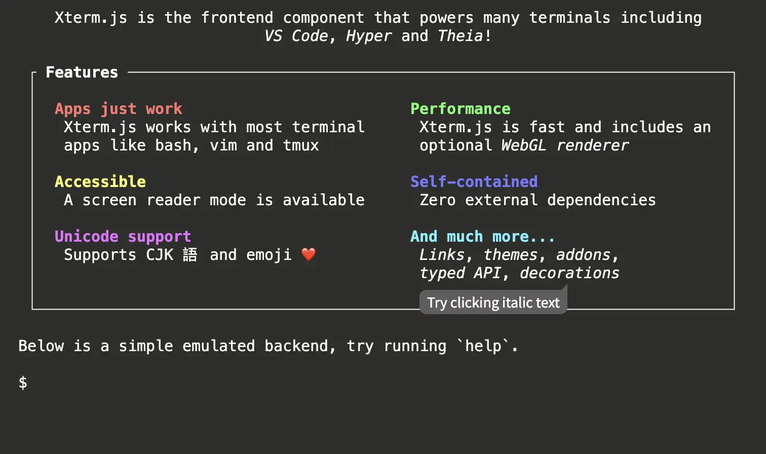 I looked at libraries like xterm.js and jQuery Terminal, which are feature rich and well-built, but they also introduce additional complexity that I didn’t really need.
